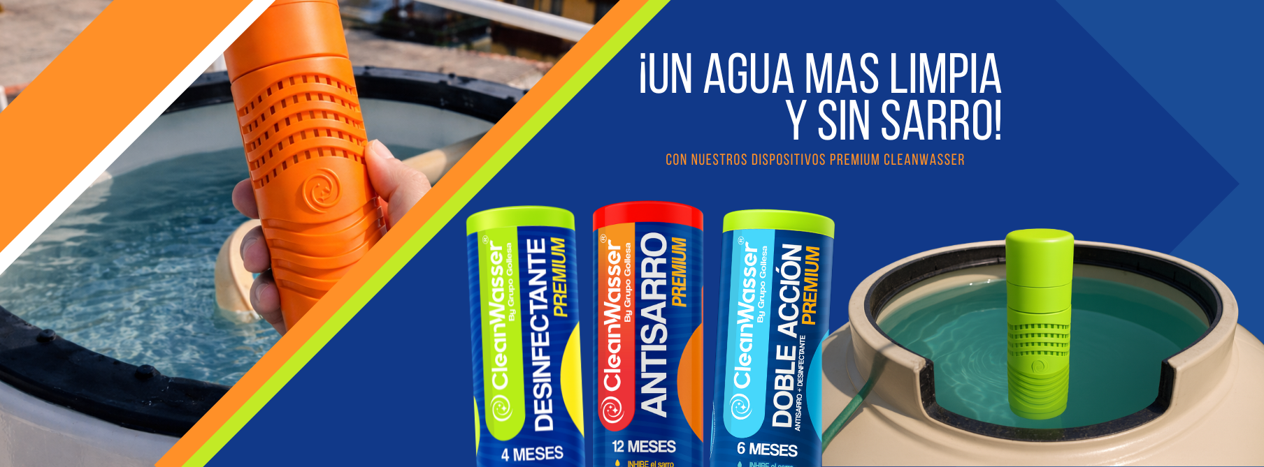 La línea PREMIUM de CleanWasser tiene un Nuevo diseño de Cartucho que desarrolla una gran potencia en la dosificación y una mayor duración para proteger tu hogar del sarro y bacterias.